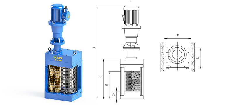 1.固體顆粒隨著污水進(jìn)入轉(zhuǎn)鼓渠道式粉碎型格柵機(jī);