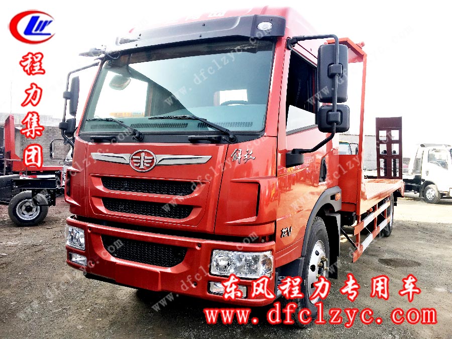 解放龍V型平板運輸車車架低,承載能力大,使用壽命長。前輪可轉(zhuǎn)向,轉(zhuǎn)角達90°,在施工道路不平的情況下,能保持所有輪胎同時著地,保證車架和輪胎受力均衡合理,確保所載設備的安全。車輛裝有腳剎系統(tǒng)和手剎制動。車輛尾部安裝專用機械式半自動爬梯,履帶式工程設備可以自行上下平臺(無需其他任何起吊設備及輔助工具)直接與主車掛鉤連接。