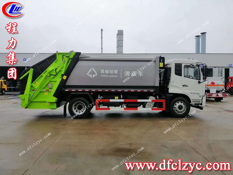 程力集團(tuán)國(guó)六東風(fēng)大多利卡側(cè)裝壓縮垃圾車,東風(fēng)公司原裝底盤(pán),白色可前翻駕駛室,底盤(pán)型號(hào):EQ1125S