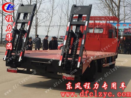 東風(fēng)多利卡型平板運(yùn)輸車車架低,承載能力大,使用壽命長(zhǎng)。前輪可轉(zhuǎn)向,轉(zhuǎn)角達(dá)90°,在施工道路不平的情況下,能保持所有輪胎同時(shí)著地,保證車架和輪胎受力均衡合理,確保所載設(shè)備的安全。車輛裝有腳剎系統(tǒng)和手剎制動(dòng)。車輛尾部安裝專用機(jī)械式半自動(dòng)爬梯,履帶式工程設(shè)備可以自行上下平臺(tái)(無(wú)需其他任何起吊設(shè)備及輔助工具)直接與主車掛鉤連接。