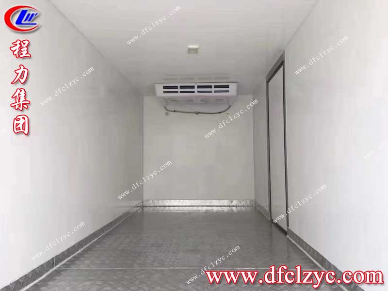 程力集團(tuán)國(guó)六長(zhǎng)安冷藏車上裝采用內(nèi)外玻璃鋼,中間保溫層,廂體厚度8cm,底板鋁花紋板,門鎖鉸鏈不銹鋼,