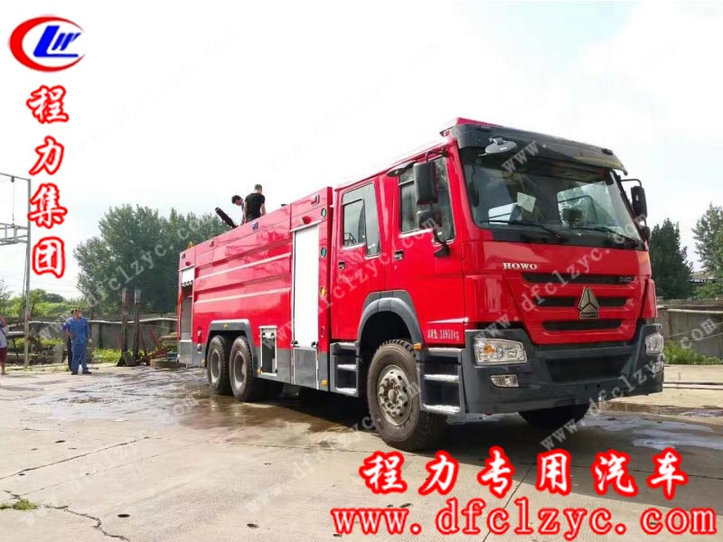 上圖為湖北程力重汽后雙橋16噸水罐泡沫消防車外觀正面圖