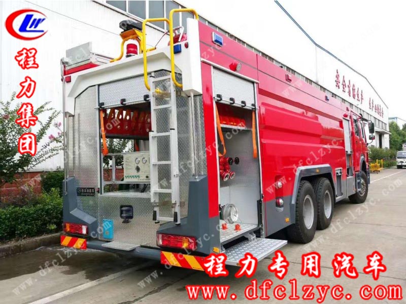 上圖為湖北程力重汽后雙橋16噸水罐泡沫消防車外觀后視圖