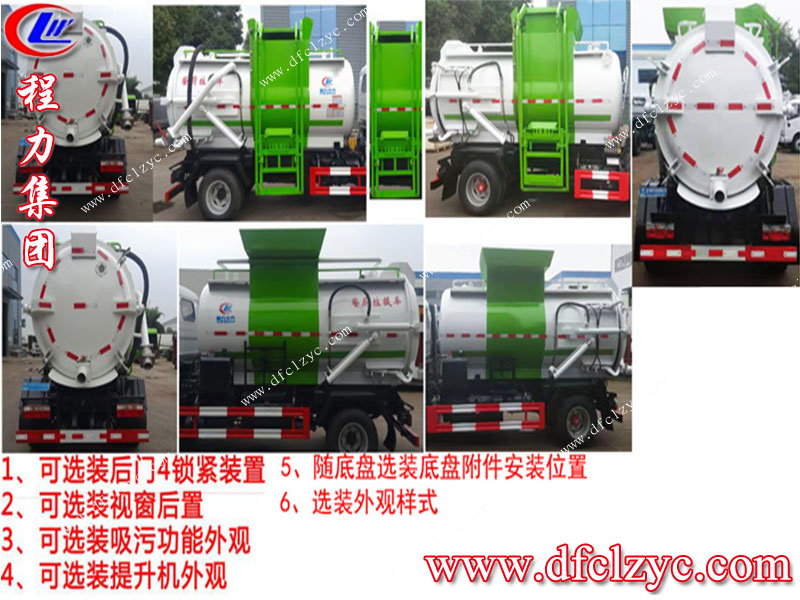 餐廚(泔水)垃圾車:餐廚垃圾車是垃圾車中的一種,是用于收集和運輸生活垃圾、食品垃圾(泔水)及城市淤泥的專用車輛。具有裝、卸垃圾自動化程度高、密封性好、操作簡便、無污水泄露和異味的散發(fā)等特點。餐廚垃圾車能將垃圾經(jīng)過強有力的推板擠壓,然后固液分離,待裝滿后送至餐廚垃圾資源優(yōu)化處理廠。整個過程,實現(xiàn)自動化。