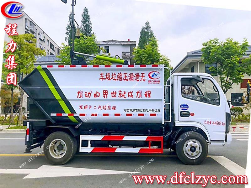 程力集團(tuán)國(guó)六東風(fēng)大多利卡側(cè)裝壓縮垃圾車,東風(fēng)公司原裝底盤,白色可前翻駕駛室,底盤型號(hào):EQ1125S