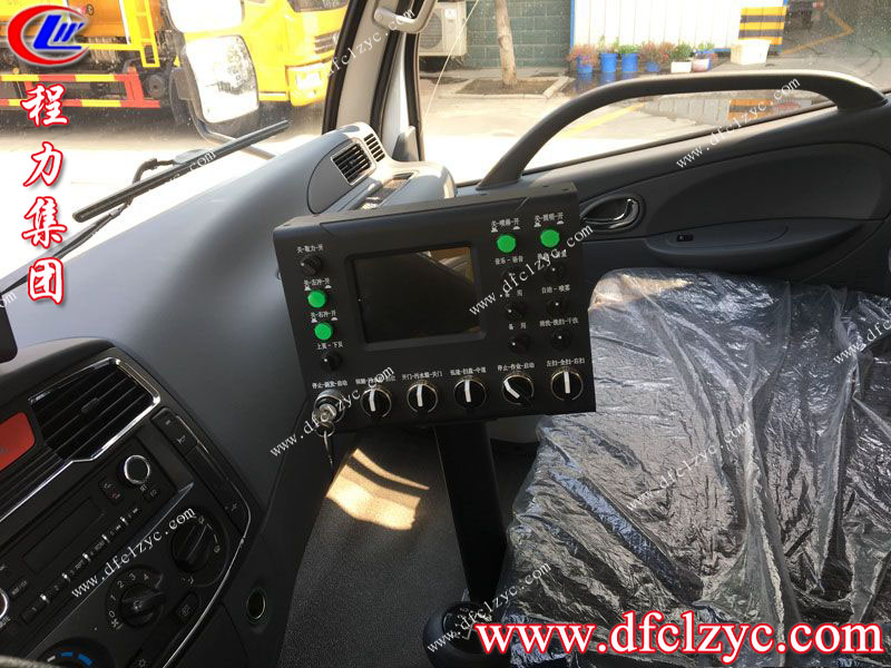 上圖為程力集團(tuán)東風(fēng)凱普特洗掃車駕駛室內(nèi)景