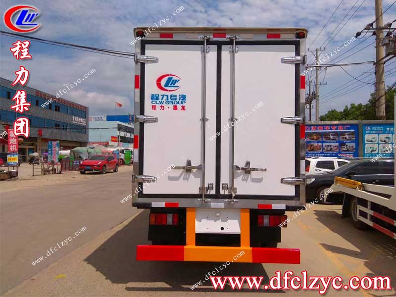程力集團(tuán)國(guó)六長(zhǎng)安冷藏車上裝采用內(nèi)外玻璃鋼,中間保溫層,廂體厚度8cm,底板鋁花紋板,門鎖鉸鏈不銹鋼,