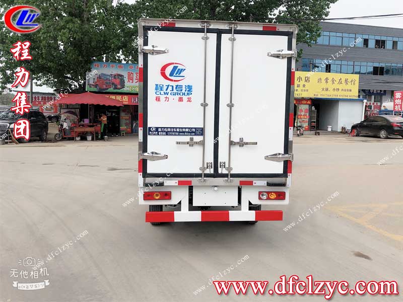 程力集團國六長安冷藏車上裝采用內(nèi)外玻璃鋼,中間保溫層,廂體厚度8cm,底板鋁花紋板,門鎖鉸鏈不銹鋼,