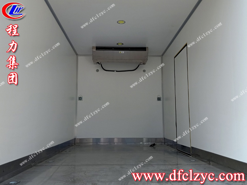 程力集團(tuán)國(guó)六長(zhǎng)安冷藏車上裝采用內(nèi)外玻璃鋼,中間保溫層,廂體厚度8cm,底板鋁花紋板,門鎖鉸鏈不銹鋼,
