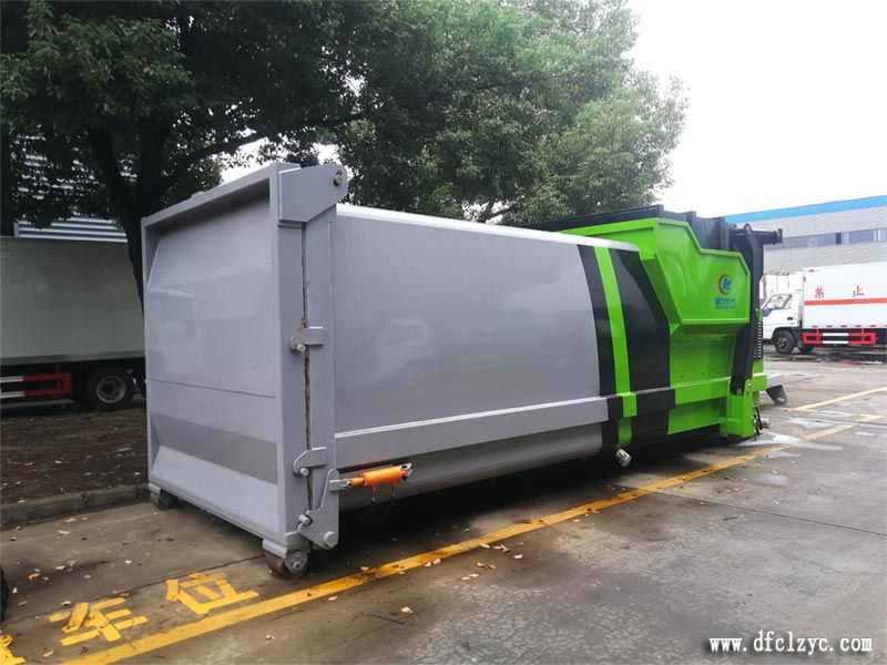 湖北程力移動(dòng)壓縮式垃圾箱由箱體總成、液壓系統(tǒng)、電氣系統(tǒng)等組成,其中箱體總成由填塞器、箱體、后門(mén)、后門(mén)鎖緊機(jī)構(gòu)、壓縮箱、翻料斗等組成。填塞器,設(shè)在箱體前部,是壓裝垃圾的主要裝置,主要用于將垃圾推入箱體內(nèi)并壓縮;后門(mén)鎖緊機(jī)構(gòu)由油缸、鎖鉤等組成,設(shè)在后門(mén)附近的箱體兩側(cè),通過(guò)油缸的伸縮,即可實(shí)現(xiàn)后門(mén)的開(kāi)啟與鎖閉。