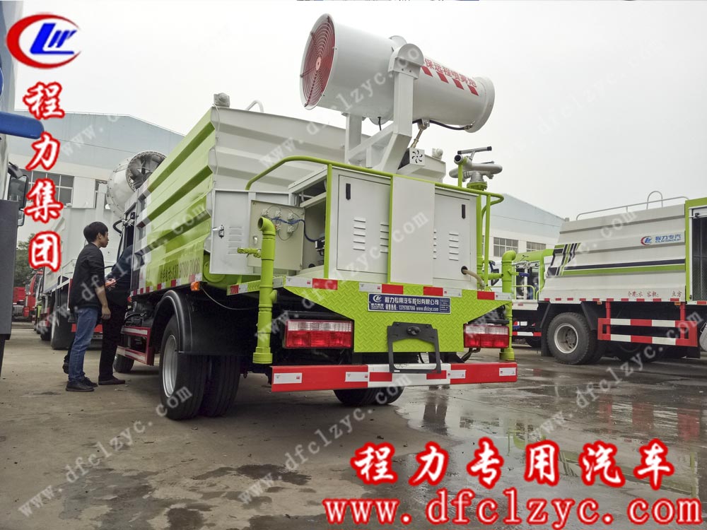 程力集團國六藍牌東風小多利卡抑塵車噴霧機配置:CLW-40型,副發(fā)動機為8KW汽油機, 風扇電機3KW,水泵功率2.2KW,霧化距離30米(靜風室內(nèi)距離)實際射程:(霧化射程會受濕度、溫度、風速等各方面天氣因素的影響,另外天氣干燥地區(qū)一部分在空中被蒸發(fā)掉)。