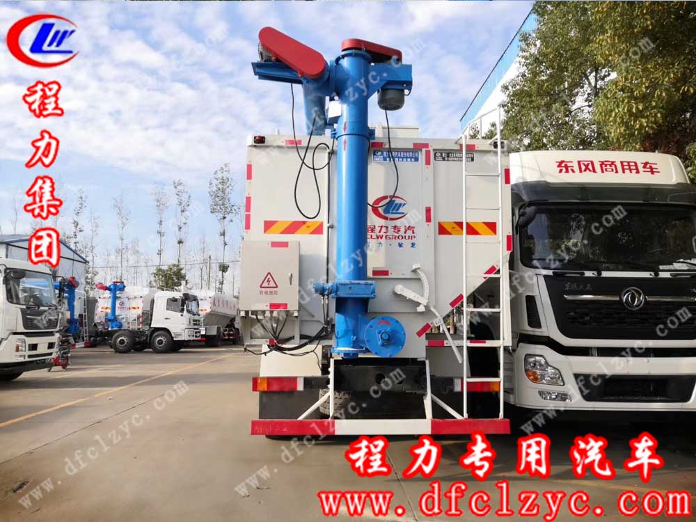 上圖為程力專用汽車股份有限公司生產(chǎn)的國(guó)五東風(fēng)天龍前四后八散裝飼料車