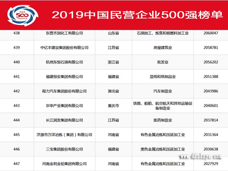上圖為2019年中國(guó)民營(yíng)企業(yè)500強(qiáng)榜單,部分排名截圖,程力汽車集團(tuán)股份有限公司較比去年,同比上升至442名