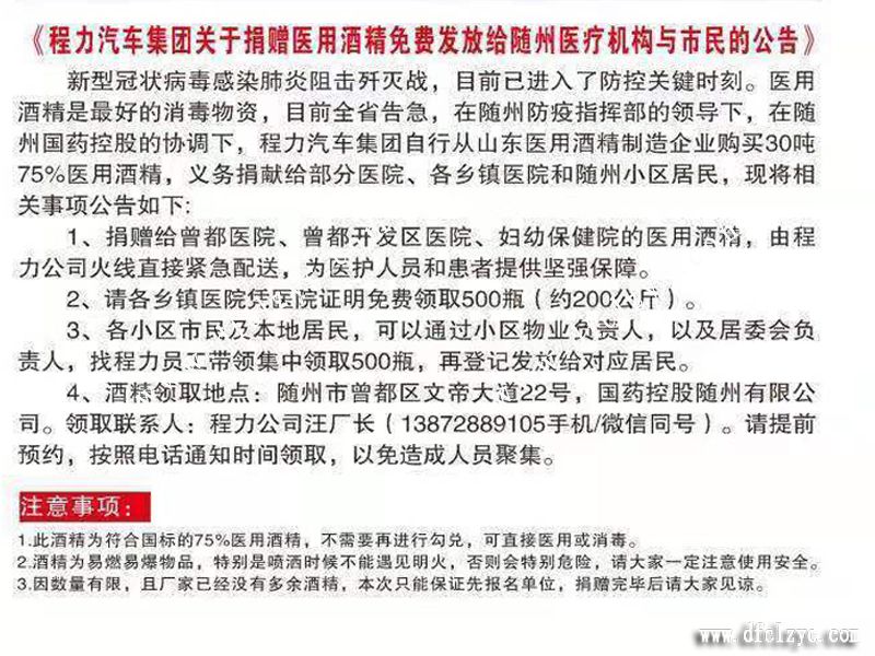 程力小編和大家一起共同面對(duì)新型冠狀病毒感染肺炎阻擊殲滅戰(zhàn),現(xiàn)在進(jìn)入了防控關(guān)鍵時(shí)刻,各個(gè)地方醫(yī)用酒精是好的消毒物資目前全省告急,在隨州市防疫指揮的領(lǐng)導(dǎo)下,在隨州國(guó)藥控股的協(xié)調(diào)下,程力專用汽車股份有限公司自行從山東醫(yī)用酒精制造企業(yè)購(gòu)買30噸75%醫(yī)用酒精,義務(wù)捐獻(xiàn)給部分醫(yī)院,各鄉(xiāng)鎮(zhèn)醫(yī)院和隨州小區(qū)居民。