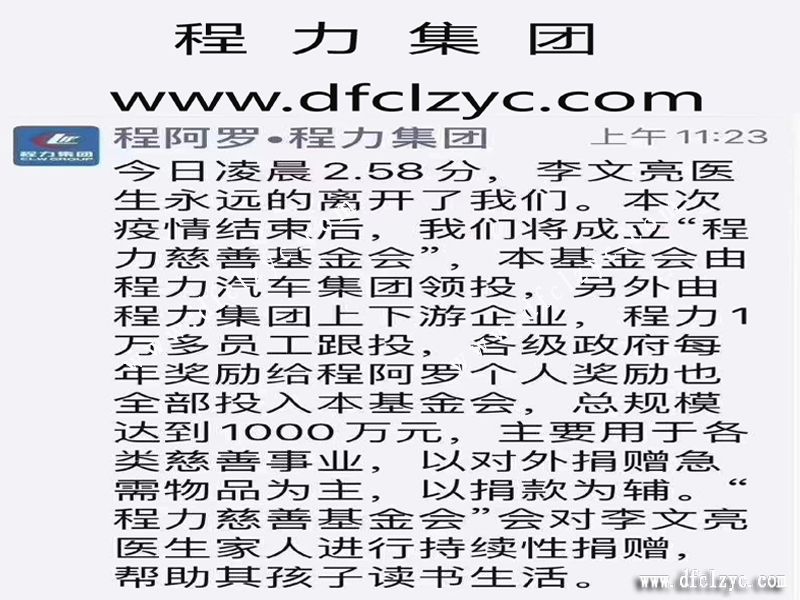 就在昨天,2020年2月7日,湖北程力集團(tuán)總經(jīng)理程阿羅先生鄭重宣布:疫情過后,程力集團(tuán)將成立“程力慈善基金會(huì)”。本基金會(huì)將由湖北程力集團(tuán)領(lǐng)投,程力集團(tuán)上下游企業(yè)及程力專用汽車股份有限公司一萬多名員工跟投,加上各級(jí)政府每年獎(jiǎng)勵(lì)給程阿羅先生的個(gè)人金額、也全部投入“程力慈善基金會(huì)”,總規(guī)模將達(dá)到1000萬元。