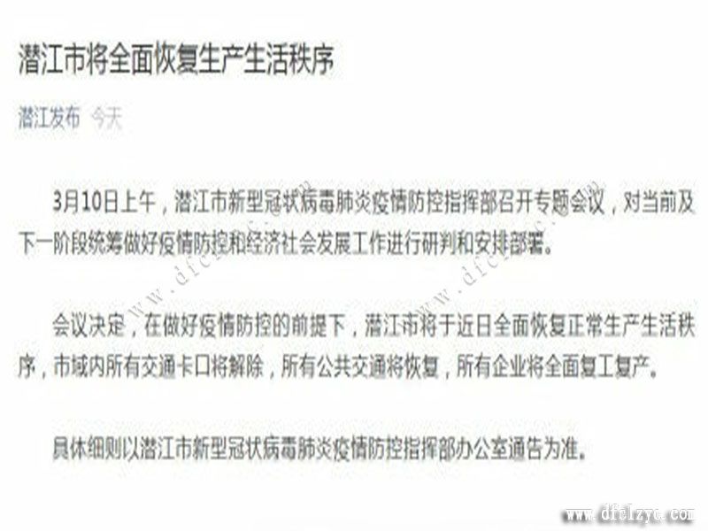 3月10日上午,潛江市新型冠狀病毒肺炎疫情防控指揮部召開專題會議,對當(dāng)前及下一階段統(tǒng)籌做好疫情防控和經(jīng)濟(jì)社會發(fā)展工作進(jìn)行研判和安排部署。會議決定,在做好疫情防控的前提下,潛江市將于近日全面恢復(fù)正常生產(chǎn)生活秩序,市域內(nèi)所有交通卡口將解除,所有公共交通將恢復(fù),所有企業(yè)將全面復(fù)工復(fù)產(chǎn)。具體細(xì)則以潛江市新型冠狀病毒肺炎疫情防控指揮部辦公室通告為準(zhǔn)。