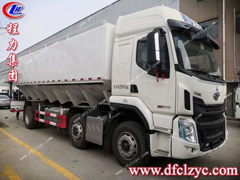 主要用于從飼料廠向畜牧場(chǎng)、養(yǎng)禽場(chǎng)及飼料加工用戶運(yùn)輸散裝飼料成品或飼料生產(chǎn)原糧,同時(shí)它也可用來(lái)運(yùn)輸某些無(wú)腐蝕性粉粒狀原料,如制藥廠粉料和糧庫(kù)周轉(zhuǎn)。 底盤配置:柳汽乘龍28方散裝飼料運(yùn)輸車;前二后四,選用柳汽乘龍M3駕駛室,玉柴200馬力,法士特小8檔變速箱,5100mm軸距,10.00R20鋼絲胎,電動(dòng)門窗,ABS,方向助力,空調(diào),整車尺寸:9100×2500×3800mm;整車總質(zhì)量:18000,額定載貨質(zhì)量7630(7565),整備質(zhì)量:10240;軸距:5100,4700,4500,3800;前輪距:1940,2046;后輪距:1860;燃料種類:柴油。